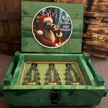 Skrzynka drewniana HandMade Butelki Świąteczny zestaw dla konesera DuchPuszczy Idealna na prezent Mikołaj Renifery