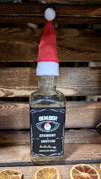 Butelka Świąteczna do Whisky Brandy na Bimber Wódkę 500ml Czapka Mikołaja w zestawie szklana butelka 0,5L z zakrętką etykieta Wesołych Świąt Duch Puszczy